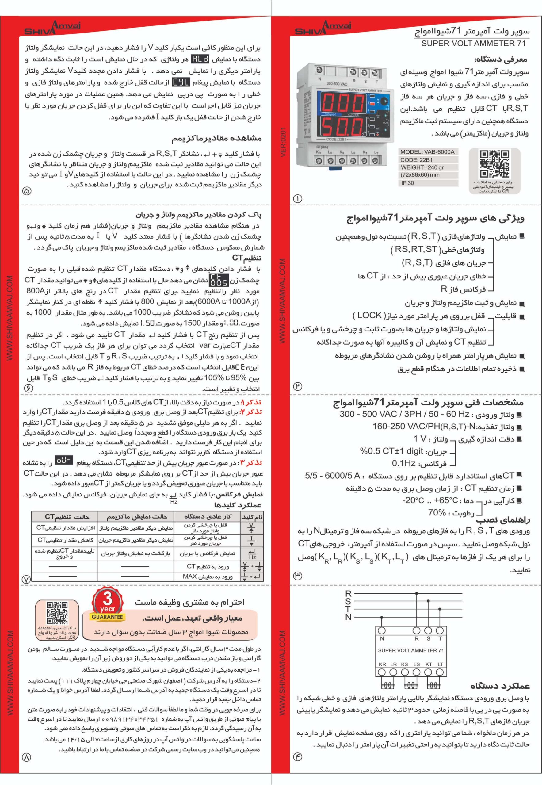 سوپر ولت آمپرمتر 71 شیوا امواج وسیله ای مناسب برای اندازه گیری و نمایش ولتاژهای خطی و فازی، سه فاز و جریان R,S,Tبا CT قابل تنظیم می باشد. این دستگاه همچنین دارای سیستم ثبت ماکزیمم ولتاژ و جریان (ماکزیمتر) می باشد.