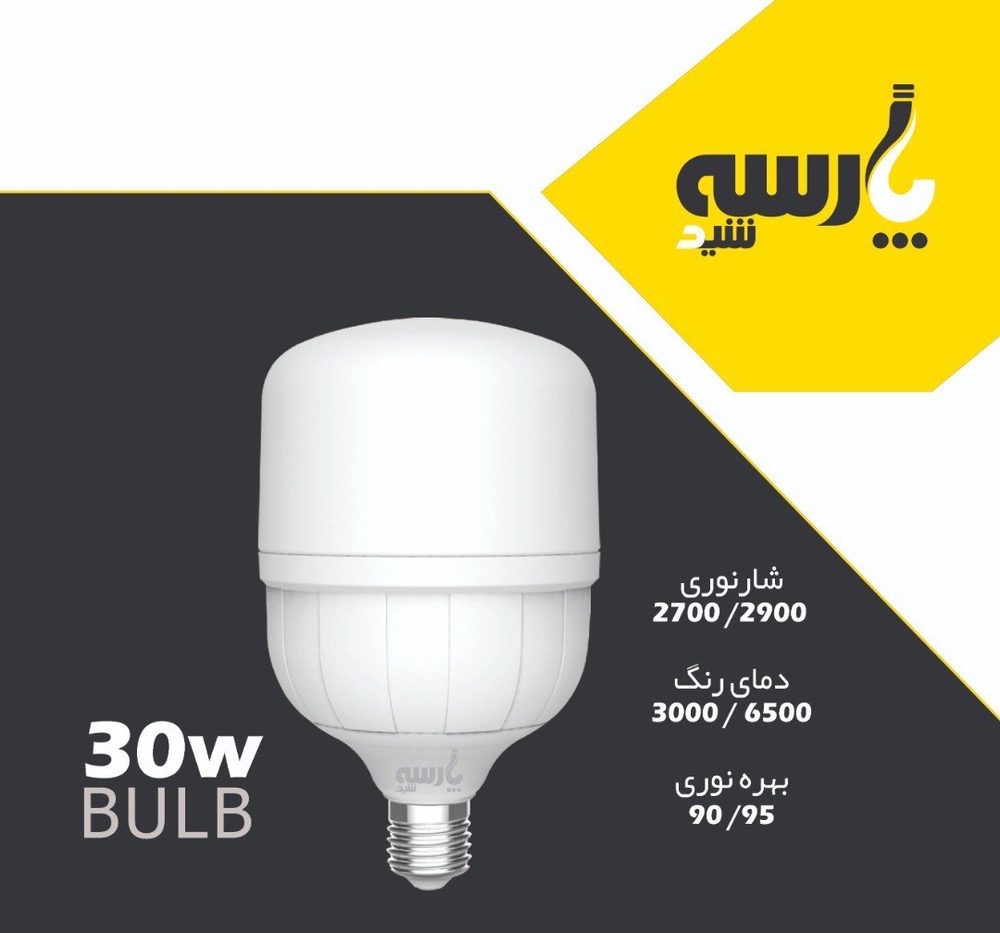 لامپ 30 وات با پایه استاندارد E27 بهراحتی روی اغلب سرپیچهای رایج نصب میشود و با مصرف انرژی پایین، جایگزین مناسبی برای لامپهای پرمصرف قدیمی به شمار میآید.